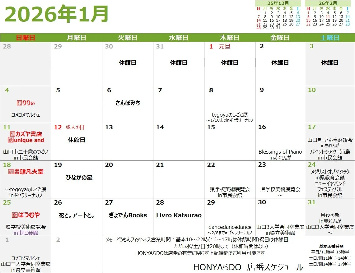お店番のご案内を更新いたしました。